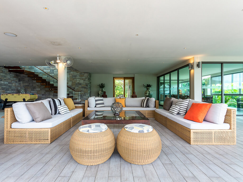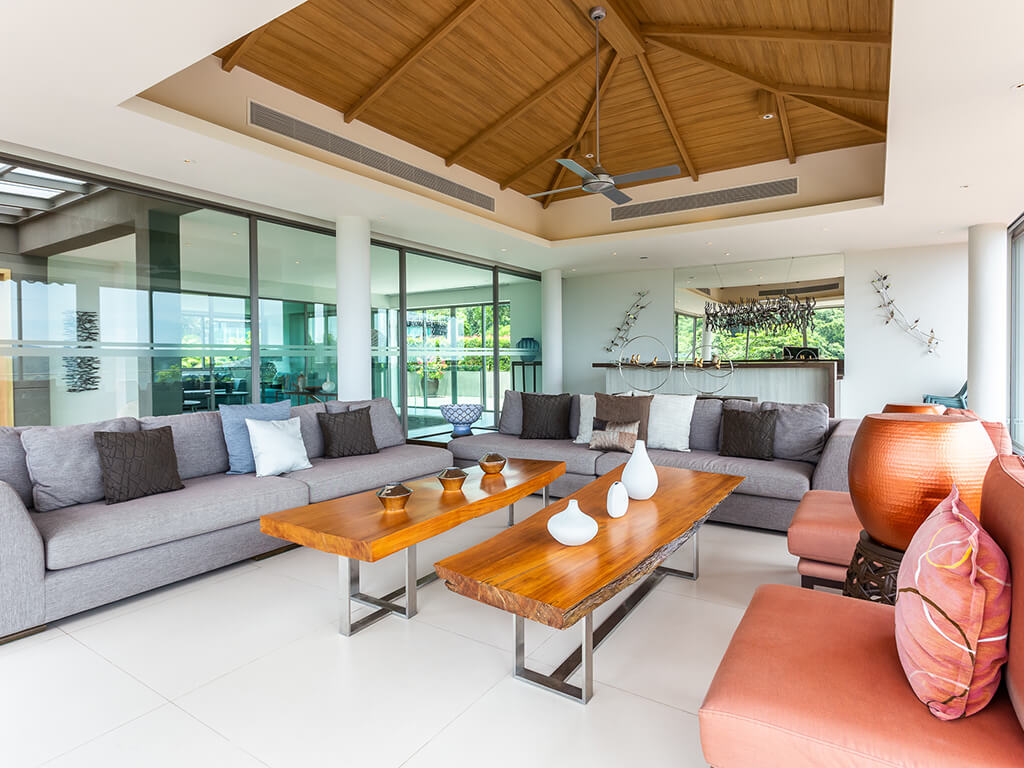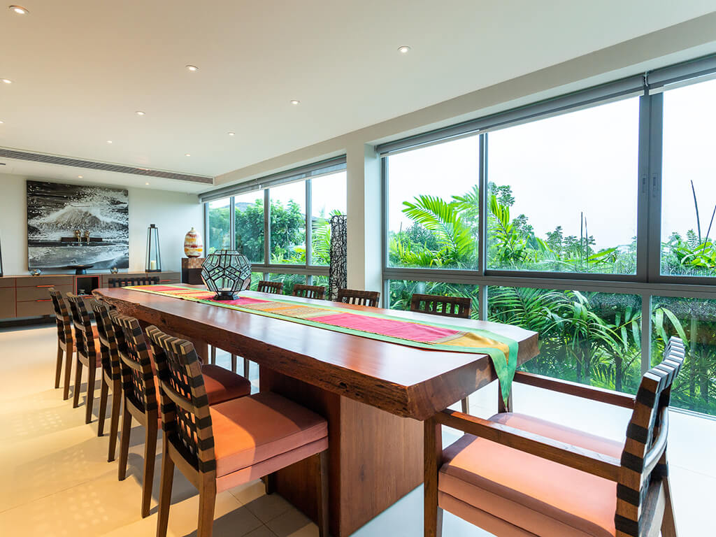 This exquisite interior of the villa in Thailand, designed in a modern minimalist style, combines eleganceand functionality, creating an atmosphere of refined luxury and comfort. The villa offers 7 bedrooms,each equipped with access to terraces with a pool and bathrooms. In the villa, you are greeted by aspacious living area with high ceilings and large windows that allow natural light to flood the space.Minimalist furniture and neutral colors create an atmosphere of tranquility and understated luxury. Thisarea is perfect for socializing and relaxation.
