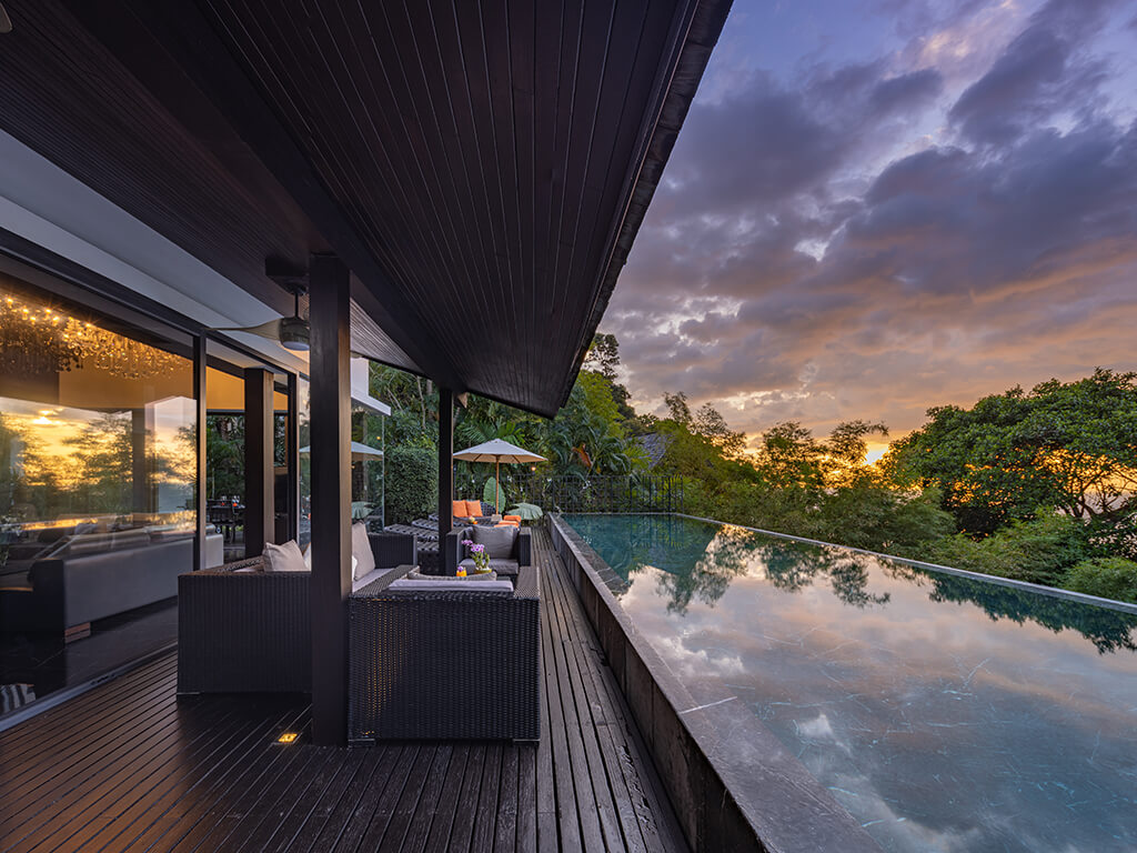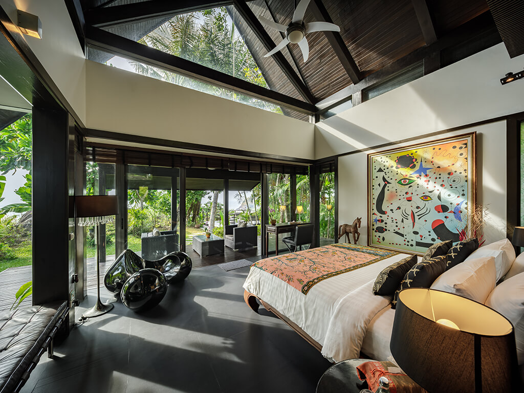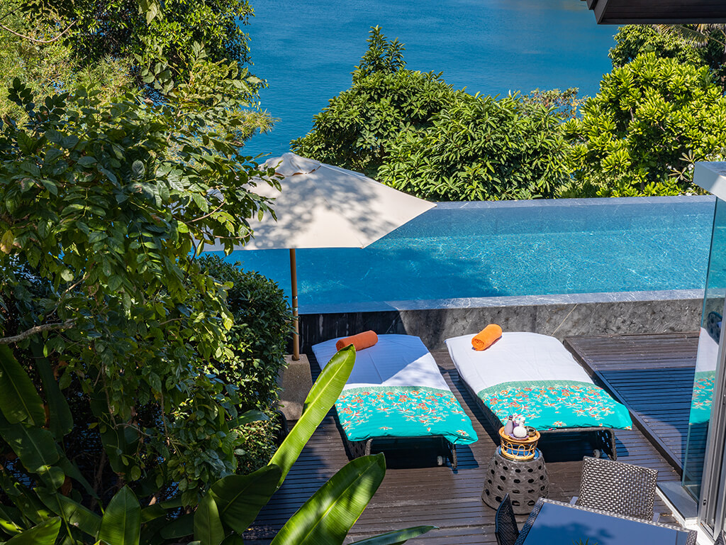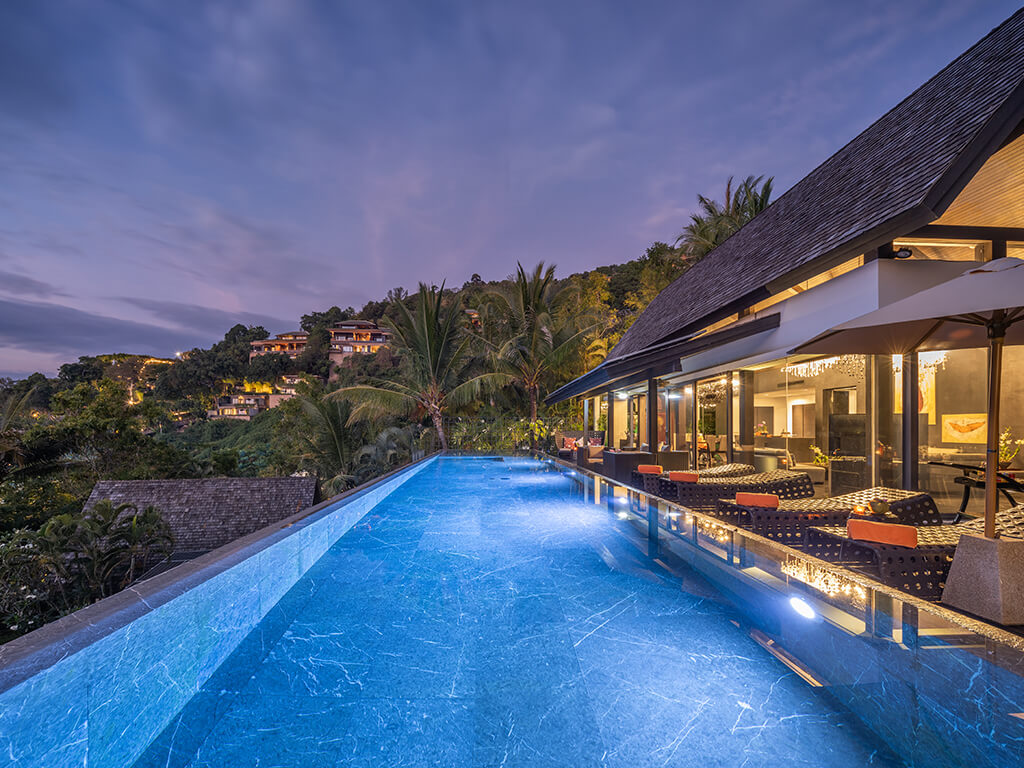 Designed by acclaimed Thai architect Charupan Wiriyawiwatt, the villas blend Thai and contemporary design. The main pavilions feature lavish living areas, a dining room, and a modern Minotti kitchen, all enclosed in glass and opening to a spacious pool terrace with 15-18 metre marble pools and gorgeous sea views.